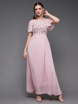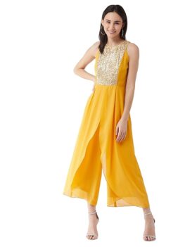 Miss Chase Women’s Mustard Halter Neck Sleeveless Solid Embellished Regular Jumpsuit