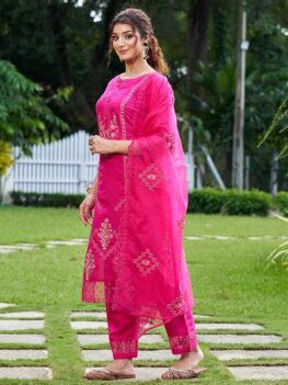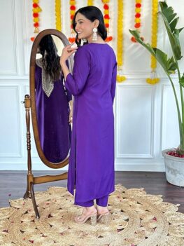Naixa Women’s Violate Chanderi Viscose Embroidered Straight Kurta.