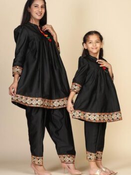 Critter kids Mom-Daughter Twinning Set – Matching Ethnic Cotton Dresses with 3/4 Sleeves (Mom XS-5XL, Daughter 1-14 Years), Printed Family Outfits