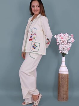 Kaajal by Vidhi Women’s Embroidered Off-White 3pc: Crop Top, Jacket and Trouser Set