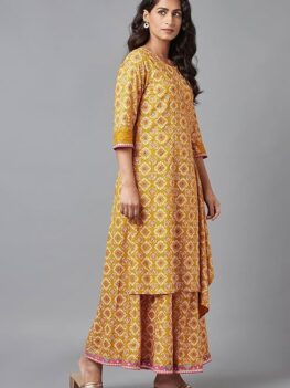 W for Woman Mustard Yellow Angrakha Jumpsuit In Round Neck