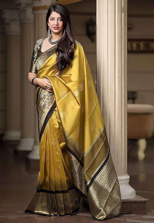 SGF11 Women’s Kanji Varam Soft Silk Saree With Blouse Piece (Yellow).