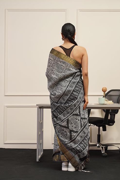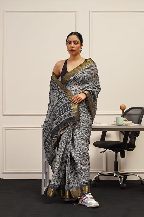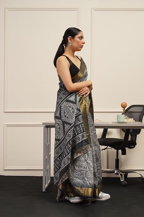 Womanista Women’s Women Ready To Wear Saree ll Women Black saree ll Women Cotton saree ll Un-stitched blouse saree