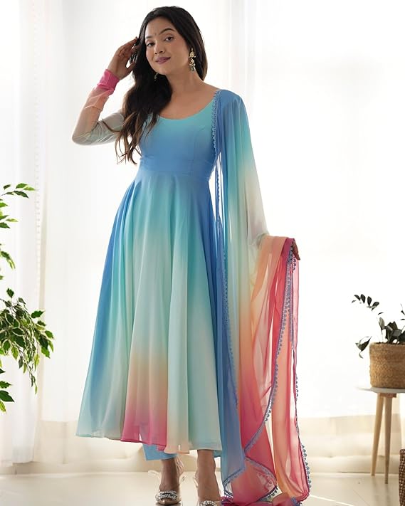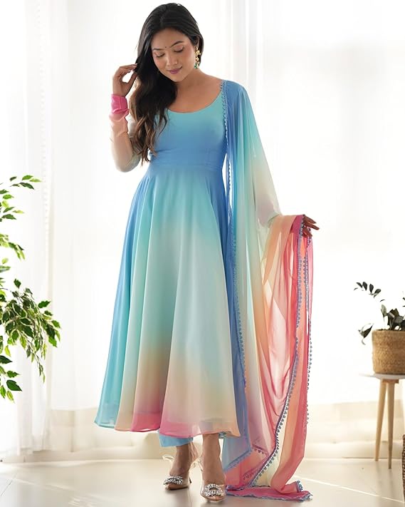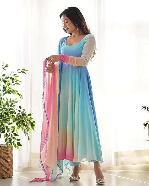 - Kurta Set Fabric:100% GEORGETTE || Pant Fabric: 100% CREPE || Dupatta Fabric:100% Pure Georgette