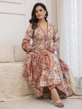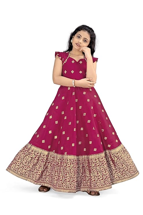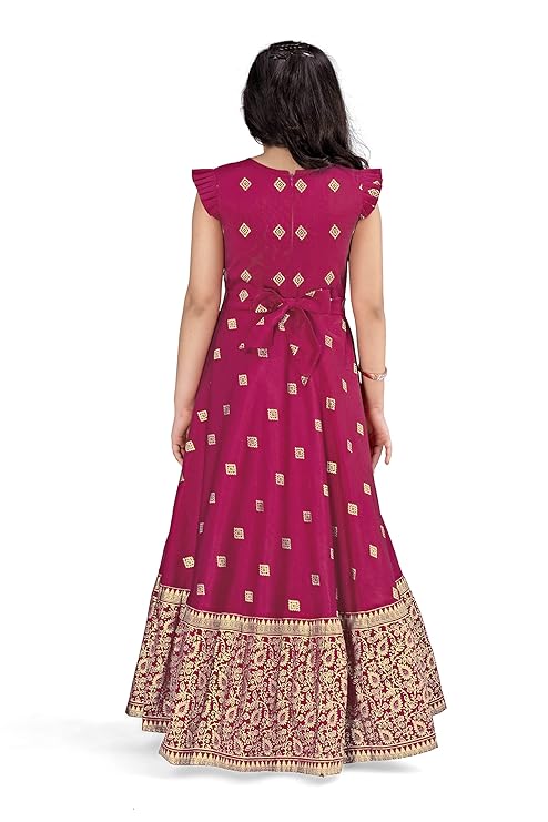 Jwalin Girls Maxi Length Flared Ethnic Dress | Long Fit and Flare Dress for Kids