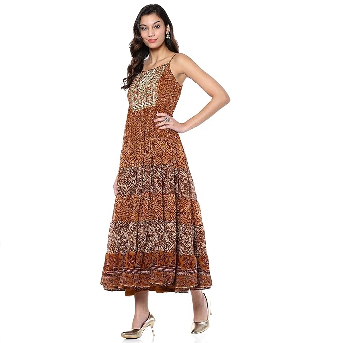 Women’s Fit and Flare Polyester Tie Floor Length Dresses