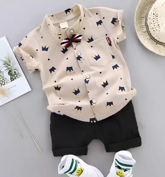 Baby Boys & Baby Girls Party (Festive) Shirt Shorts (ROYAL CHIKU BLACK).