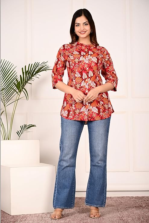 - STYLISH PRINT & DESIGN: Designed with Button Loop and Mandarien Collor, This top strikes the perfect balance between fashion and functionality. Can be Used like a Shirt and Top also.
