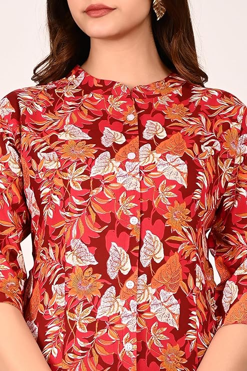STYLISH PRINT & DESIGN: Designed with Button Loop and Mandarien Collor, This top strikes the perfect balance between fashion and functionality. Can be Used like a Shirt and Top also.