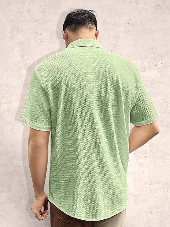 Pinkmint Popcorn Shirt for Men Soild Slim Fit Collar Trendy Men Shirt.