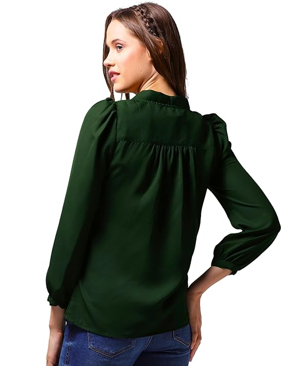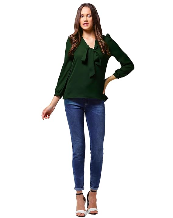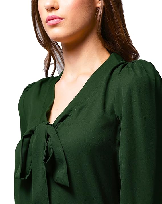 Stylistico Women Office Top Solid v Neck Work wear Full Sleeves top Formal Vneck Plain Balloon top tie up