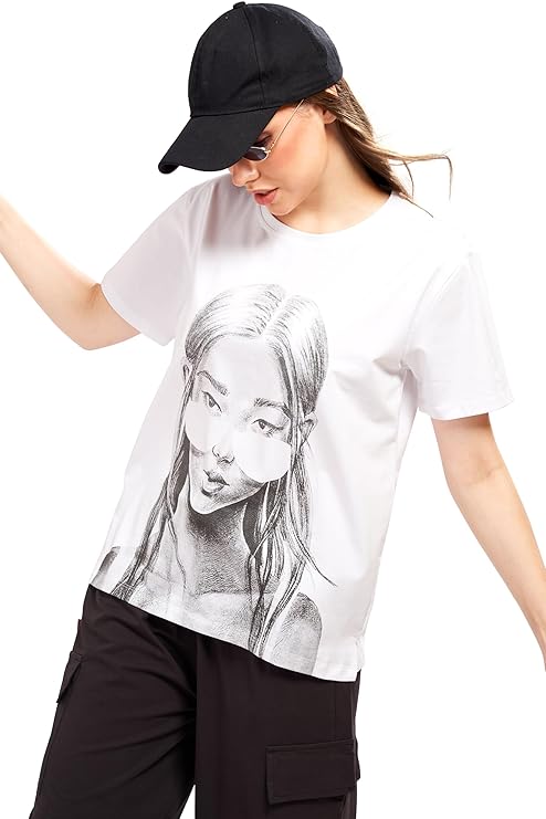- T-shirt has round neck, short sleeves an regular waist hem