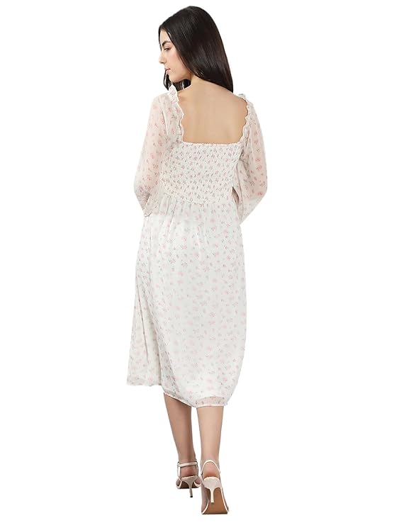 Women’s Polyester Fit and Flare Below The Knee Dress