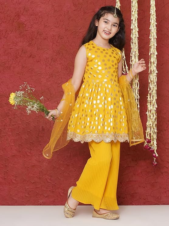 AJ DEZINES Kids Ethnic Wear Motif Foil Printed Frock Style Salwar Suit Set For Girls With Dupatta