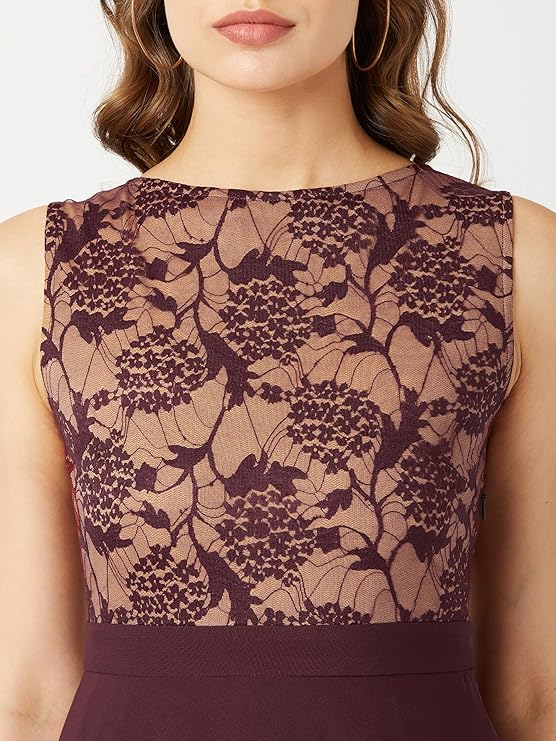 Miss Chase Women’s Brick Red & Dusty Green Boat Neck Sleeveless Dress.
