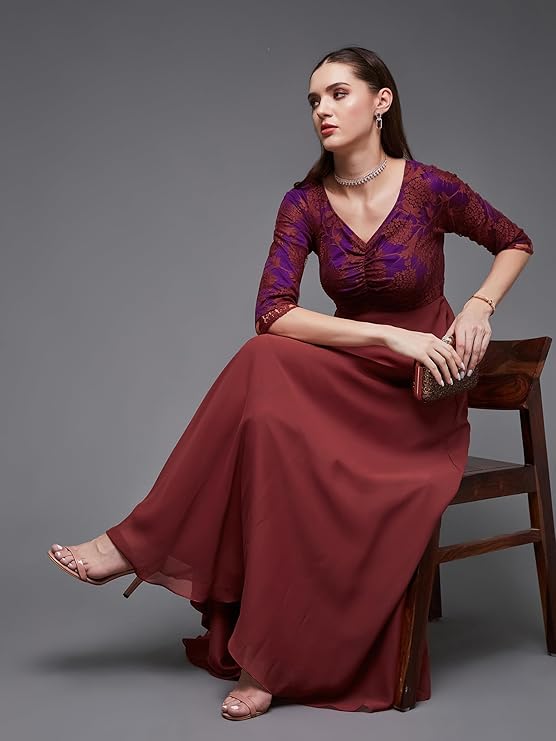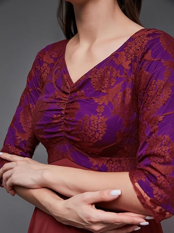 Miss Chase Women’s Sweet-Heart Neck 3/4 Sleeve Self Design.