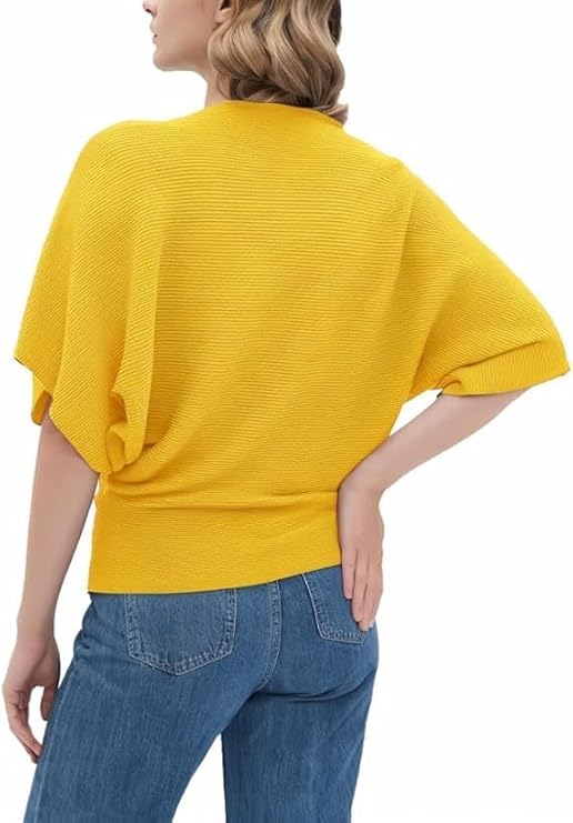 Zilcon Women Fashion Ribbed Batwing Sleeves Bagy Balloon Style Fit Top for Women t Shirts Women Formal, Casual, Office, Date, Outing, Party Tops
