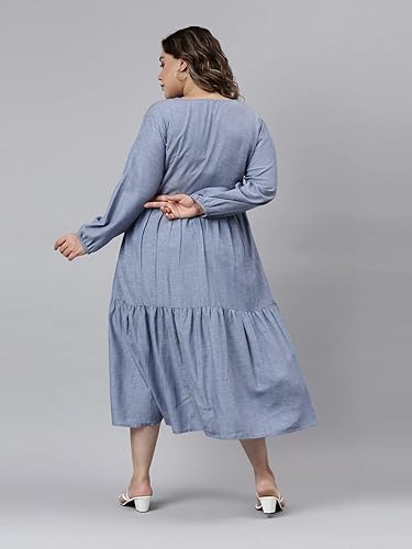 The Pink Moon Women’s Maxi Plus Size Tier Dress – (DRS_106W_CHAMBRY_Blue_6XL)