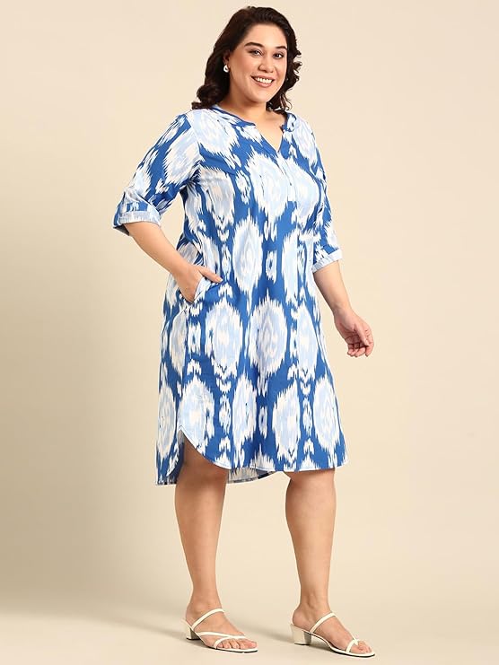 the PINK MOON Women’s Plus Size Blue and White Printed Dress (DRS_NIM18_BLUIKAT)
