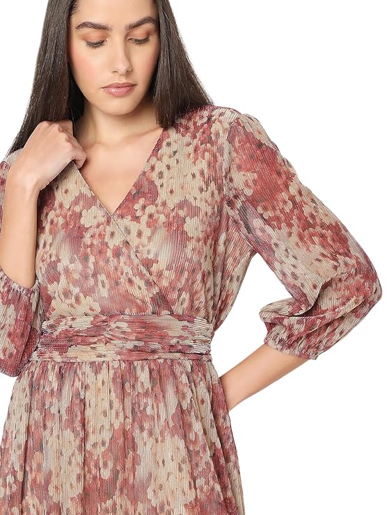 VERO MODA Women’s Polyester Fit and Flare Midi Dress