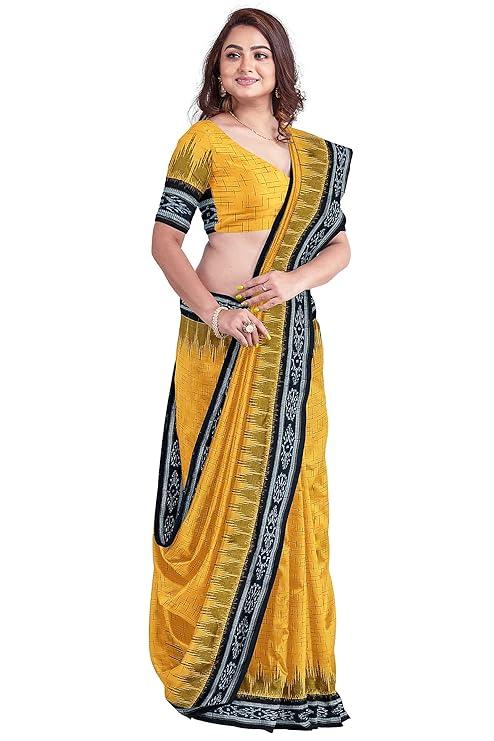 PRITIsree Odisha Sambalpuri Handloom Women’s Cotton Saree Odisha Handloom Handmade Pure Cotton Khandua Natural Cotton Ikat Sambalpuri Saree For Women Handloom Saree For Women 5SE9BC-48