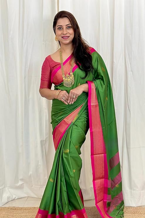 Women’s Kanjivaram Soft Lichi Silk Saree With Blouse Piece