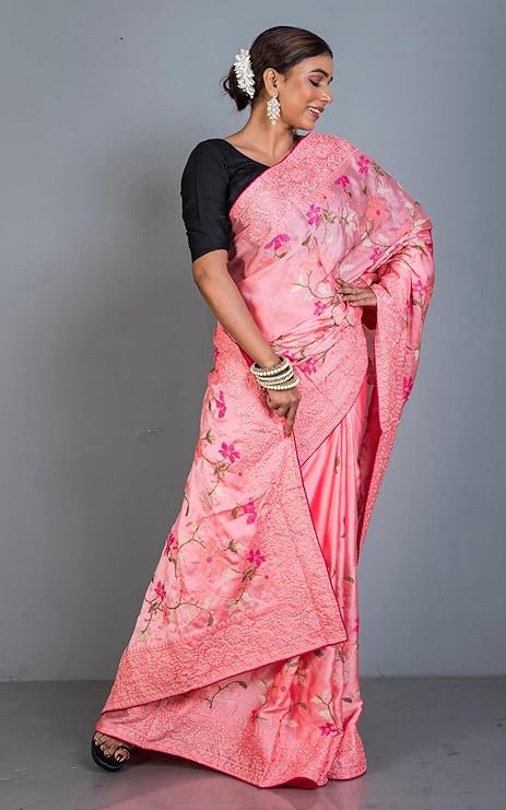 - Color & Style: Salmon Pink, Hot Pink & Multicolored base with floral accents, inspired by traditional Indian artistry like Madhubani and Ketia Tussar designs.