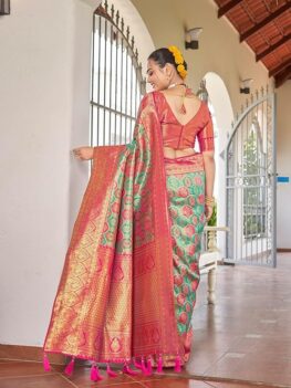 - Fabric & Material: Made from smooth and lightweight Italian Crepe Silk for a soft, graceful drape; includes a matching blouse piece for a complete traditional look.