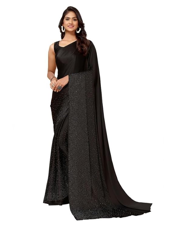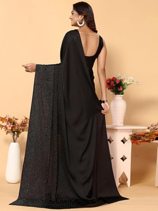 SIRIL Satin Silk Hot Fixing Stone Work Saree.