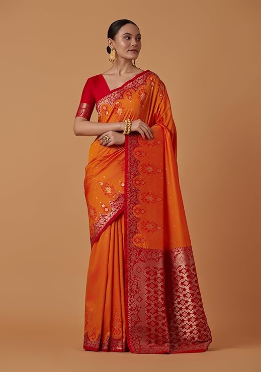 Women’s Luxurious Banarasi Soft Silk Saree with Zari Woven Rich Brocade Design comes with Unstitched blouse Piece