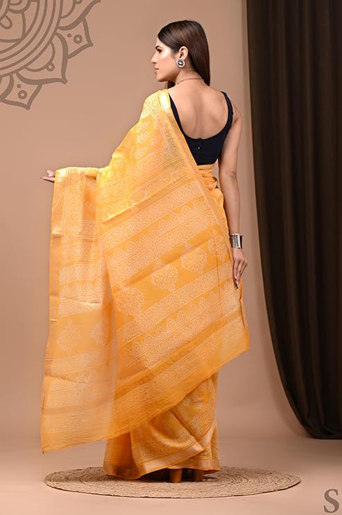 Eddika Hand Block Printed Pure Chanderi Silk Saree | Chanderi Silk Saree for Women