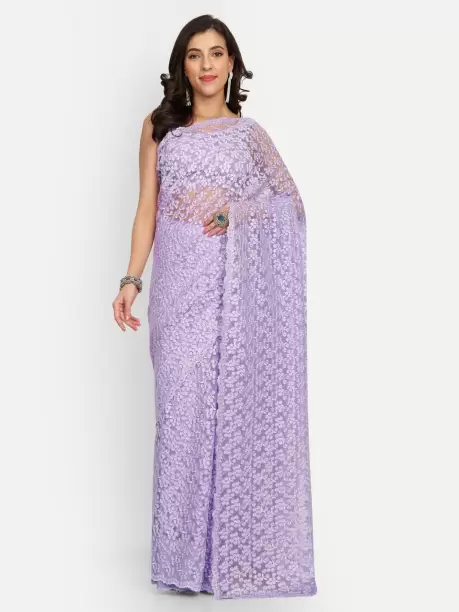 Embroidered Leveria Net Saree (Purple).