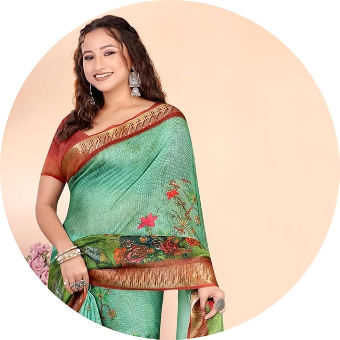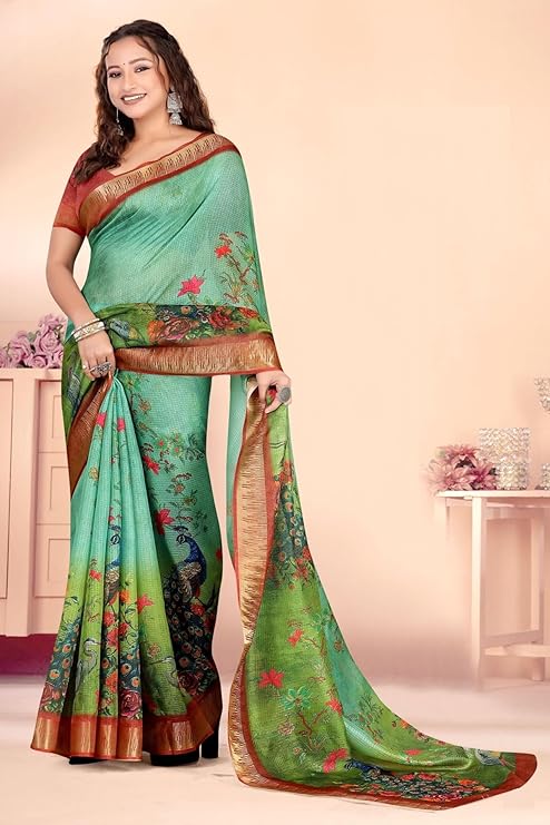 Jaanvi fashion Women’s Kota Silk Peacock Printed Saree.