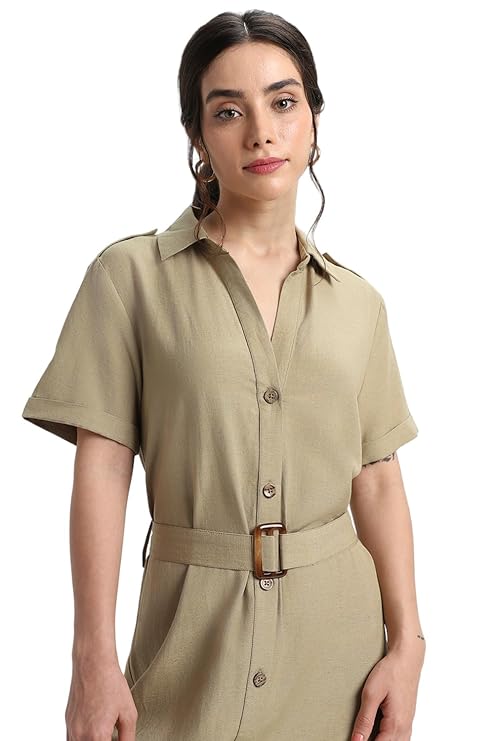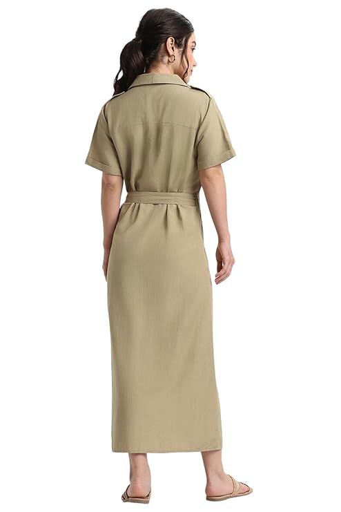 DL Woman Women’s Midi A-Line Shirt Dress with Belt, A-Line Fit Solid.