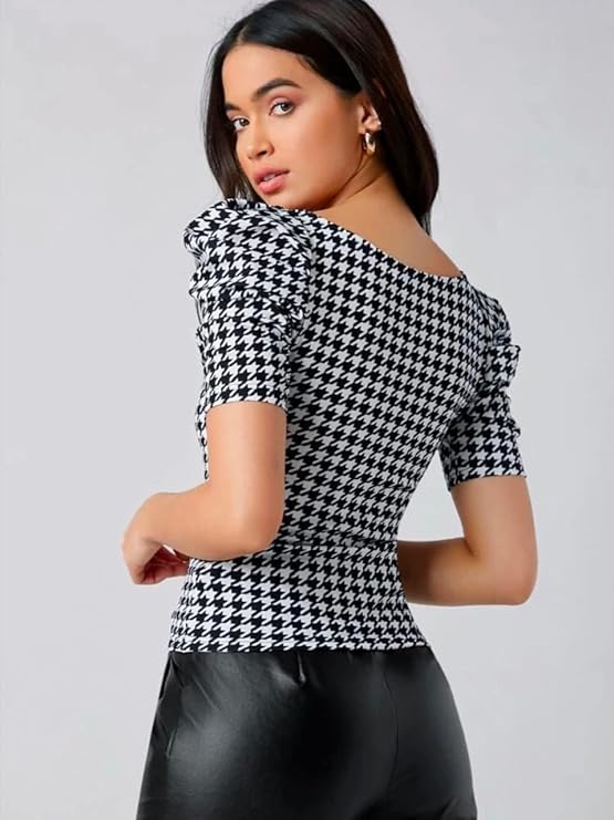 Dream Beauty Fashion Women’s Casual Sweetheart Neck and Puff Sleeves Stylish Printed Top – 23″ Inches (Tee-Joy Modelo)