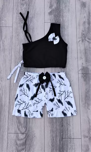 Girls Casual Top Shorts (Black), Sales Package, Meet Fashion.