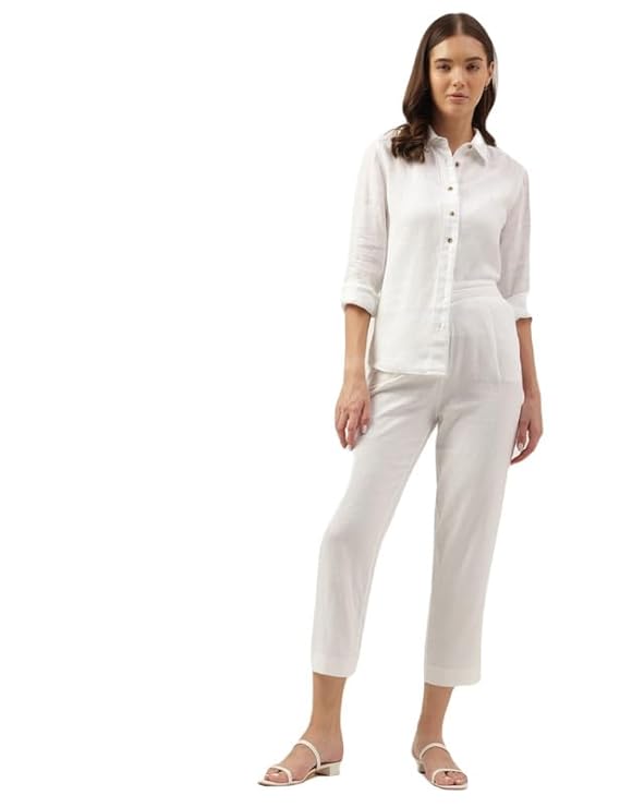 Marks & Spencer Womens Solid Linen Blend Collared Neck Regular Fit Shirt