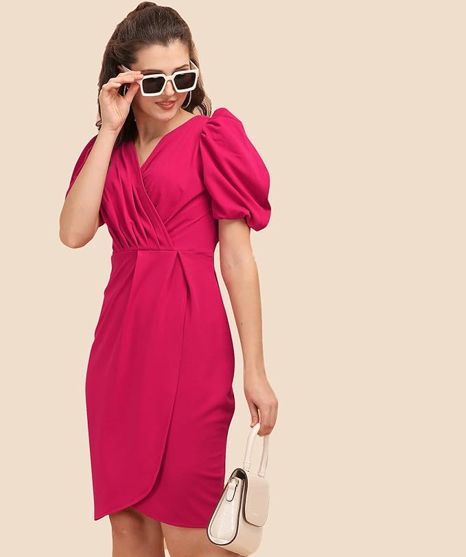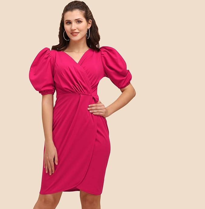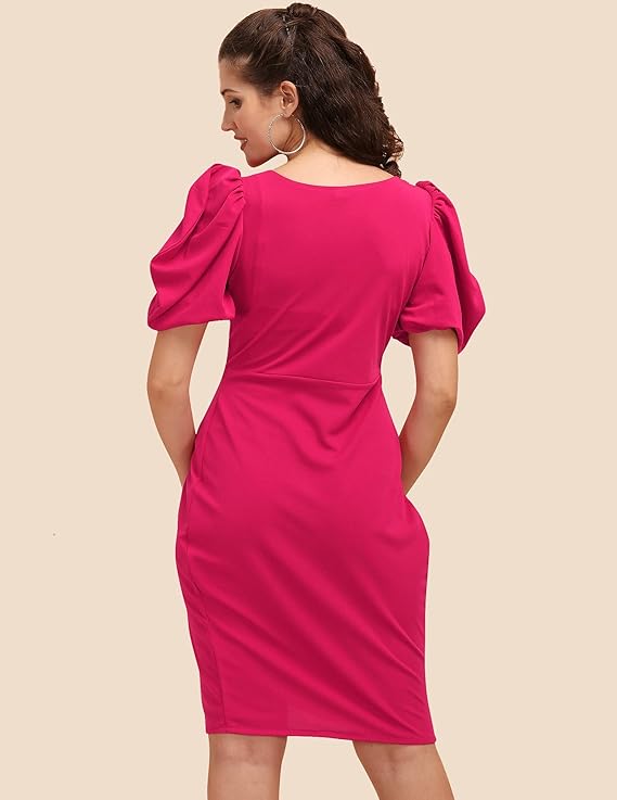 Sheetal Associates Women’s Puff Sleeve V-Neck Bodycon Casual Mini Dress