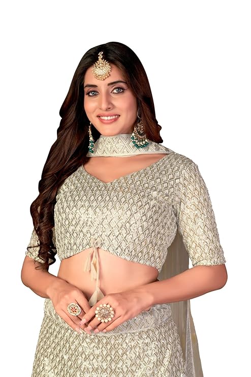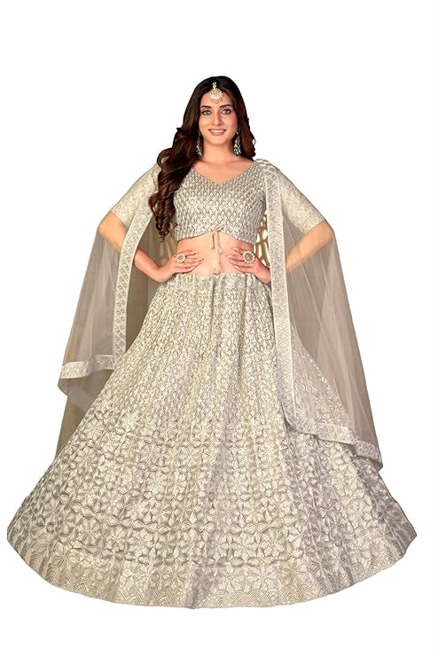- Elegant Lehenga: A stunning white and off-white lehenga crafted from delicate net fabric