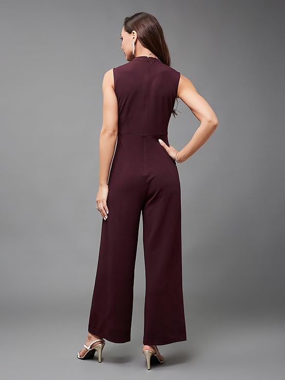 Miss Chase Women’s Sleeveless Solid Asymmetric Neck Cut-Out Regular Length Jumpsuit with Pockets