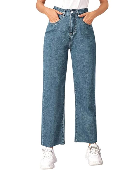 KOTTY Women High Rise Relaxed Fit Cotton Lycra Blend Ankle Length Jeans.