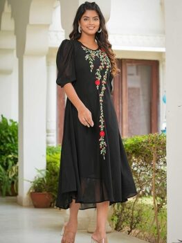 Product details Material type: Georgette Length: Midi Occasion type: Casual Sleeve type: 3/4 Sleeve Pattern: Solid Style: Empire Waist Country of Origin: India About this item Color – Black || Size – S Material/Fabric – Georgette Style – Anarkali || Pattern – Solid Contains – Dress Special Notes – Before Ordering Please Check Your Measurement…