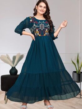 Name : women’s embroidery work kurti with dupatta Kurta Fabric : Georgette Fabric : Georgette Bottomwear Fabric : Georgette Sleeve Length : Long Sleeves Pattern : Embroidered Set Type : Kurta with Dupatta Stitch Type : Stitched Net Quantity (N) : Single Georgette fabric embroidered gown, Women’s evening wear, georgette gown, Elegant, embroidered gown for…