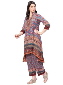 Elegant Look Featuring a rich and elegant design, this kurta, sharara, and dupatta set comprises a beautifully printed kurta with a round neckline and tie-up. The matching sharara bottoms in this set are designed to provide comfort as well as an ethnic style. Completing the ensemble is a matching dupatta, adding a touch of charm…