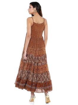 Product details Material type Polyester Length Floor Length Sleeve type Sleeveless Style Tiered Neck style Strappy Care instructions Hand Wash Only Country of Origin India About this item Product Type:- Dresses Fabric:-100% Polyester Color:-Beige Neck:-Strappy Sleeve:-Sleeveless