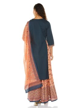 Product details Material composition Cotton Length Calf Length Sleeve type 3/4 Sleeve Neck style Round Neck Style Biba Women Cotton Straight Solid Suit Set Material type Cotton Country of Origin India About this item Color : Blue Fabric : Cotton Sleeve : 3/4th Sleeve Washcare : Hand wash Pack Content : 1 Kurta,1 Sharara,1 Dupatta