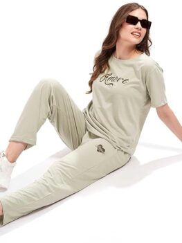 Product details Material composition Cotton Pattern Solid Closure type Drawstring Care instructions Machine Wash Country of Origin India About this item Material : Cotton (95% cotton, 5% elastane) This tracksuit consists of Ribbed t-shirt and joggers T-shirt has round neck, short sleeves an regular waist hem Best worn with joggers or denim for a casual…