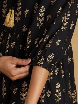 Product details Material type: Polyester Length: Midi Occasion type: Ceremony Sleeve type: Long Sleeve Pattern: All Over Print Style: Fit And Flare Country of Origin: India About this item Fabric: 100% Polyester | Wash Care: Hand wash with warm water, Wash dark colors separately, Do not Bleach, Dip Dry away from direct heat, Warm Iron…