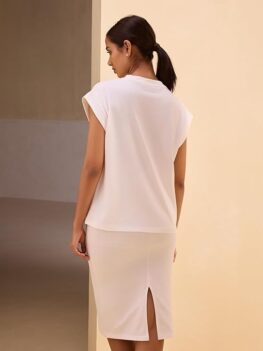 Product Details: Neck: Round Neck Sleeve Style: Regular Sleeves Sleeve Length: Short Sleeve Fit: Regular Fabric Cotton Blend Type: Regular Top Belt Included: No Pattern: Solid Color White Pack of 1 Fabric Care: Hand Wash Length: Hip Length Additional Details Neck: High neck, Length: Regular, Fit: Regular fit, Sleeve: Short sleeve, Fabric: Ribbed, rib-knit, Pattern:…